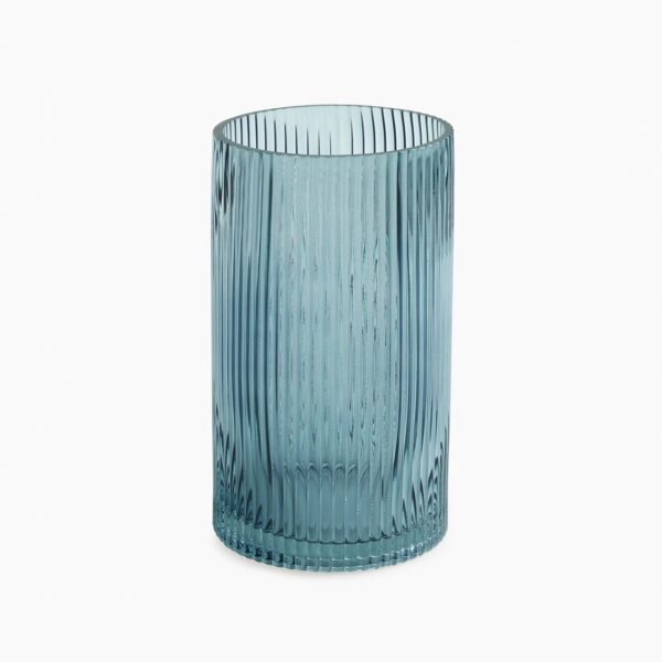 Teal Ribbed Straight Glass Vase – Small